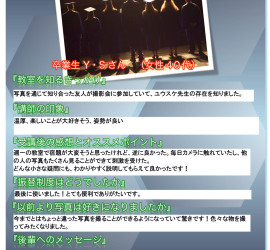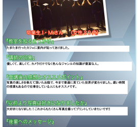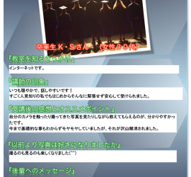 写真教室の卒業者に写真教室を受講しての感想や講師の印象をコメントしてもらいました。